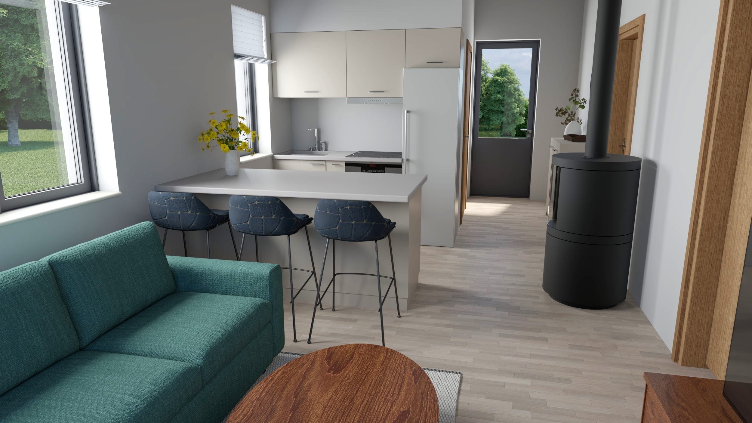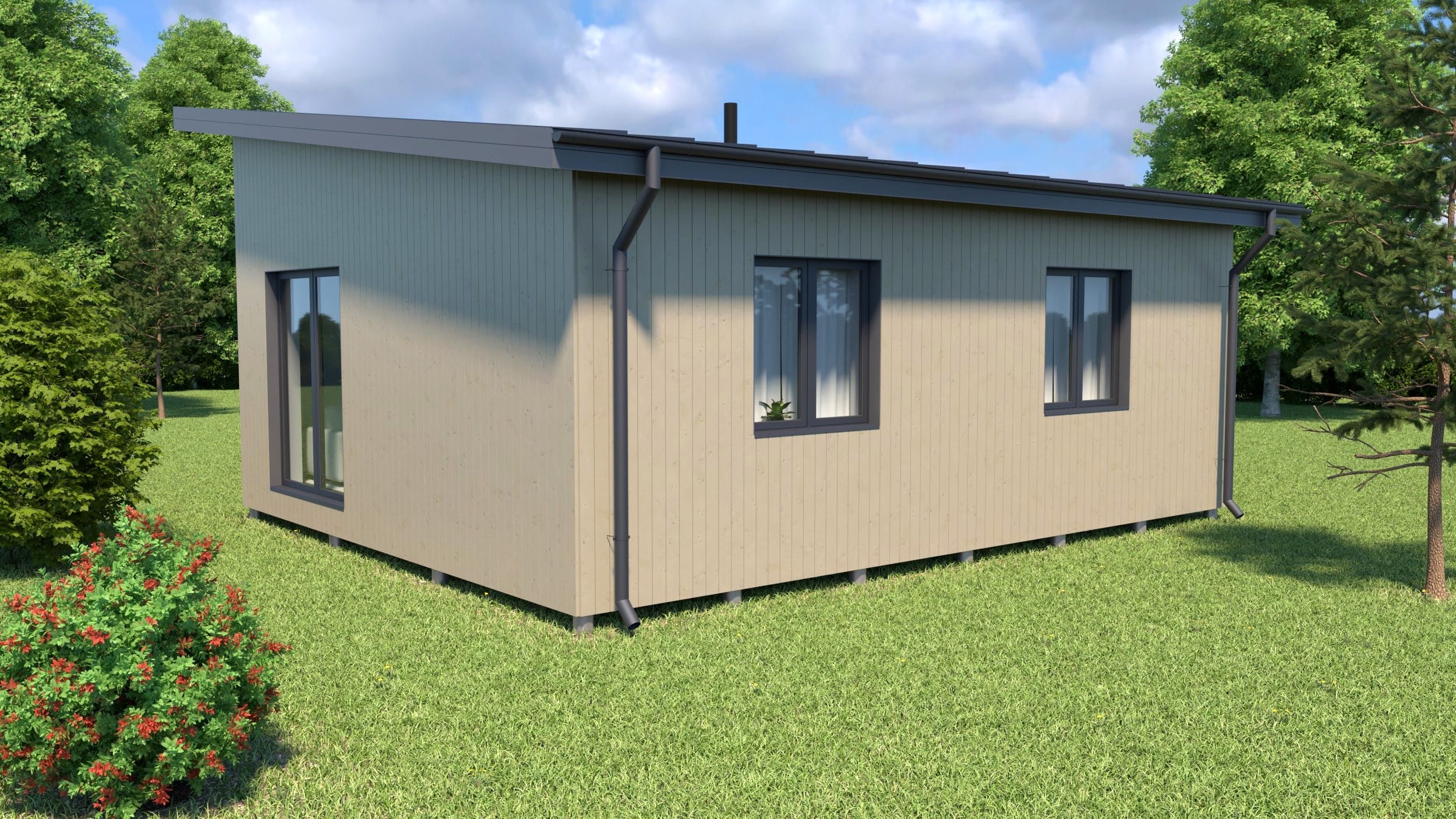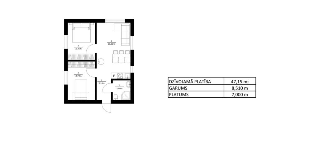 Apbūves laukums līdz 60m2, saskaņošana ar paskaidrojuma rakstu. Vienkārša, gaumīga un funkcionāla dzīvojamā koka karkasa māja ar platību 47,15 m2